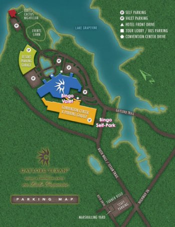 - We recommend parking in the Convention Center parking areas, found at the first two left turns as you enter the resort property. Follow signage for the Convention Center.